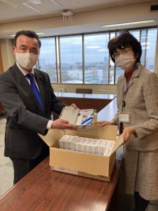 血液中の酸飽和度を計測するパルスオキシメーターが、ホテル等で療養する軽症者の容態急変を見つけるのに役立つことを公明党はいち早く察知。都議会公明党は昨年4月にパルスオキシメーターの配備を都に要請しました。そして第3波による感染者急増により医療がひっ迫し、直ぐに入院できず自宅療養を余儀なくされる感染者の症状悪化を把握するため、伊藤こういち始め都議会公明党は、都に対しパルスオキシメーターの緊急配備を強く要請。本年1月15日に140台、翌月2月にさらに150台、合計290台のパルスオキシメーターが品川区に届けられました。